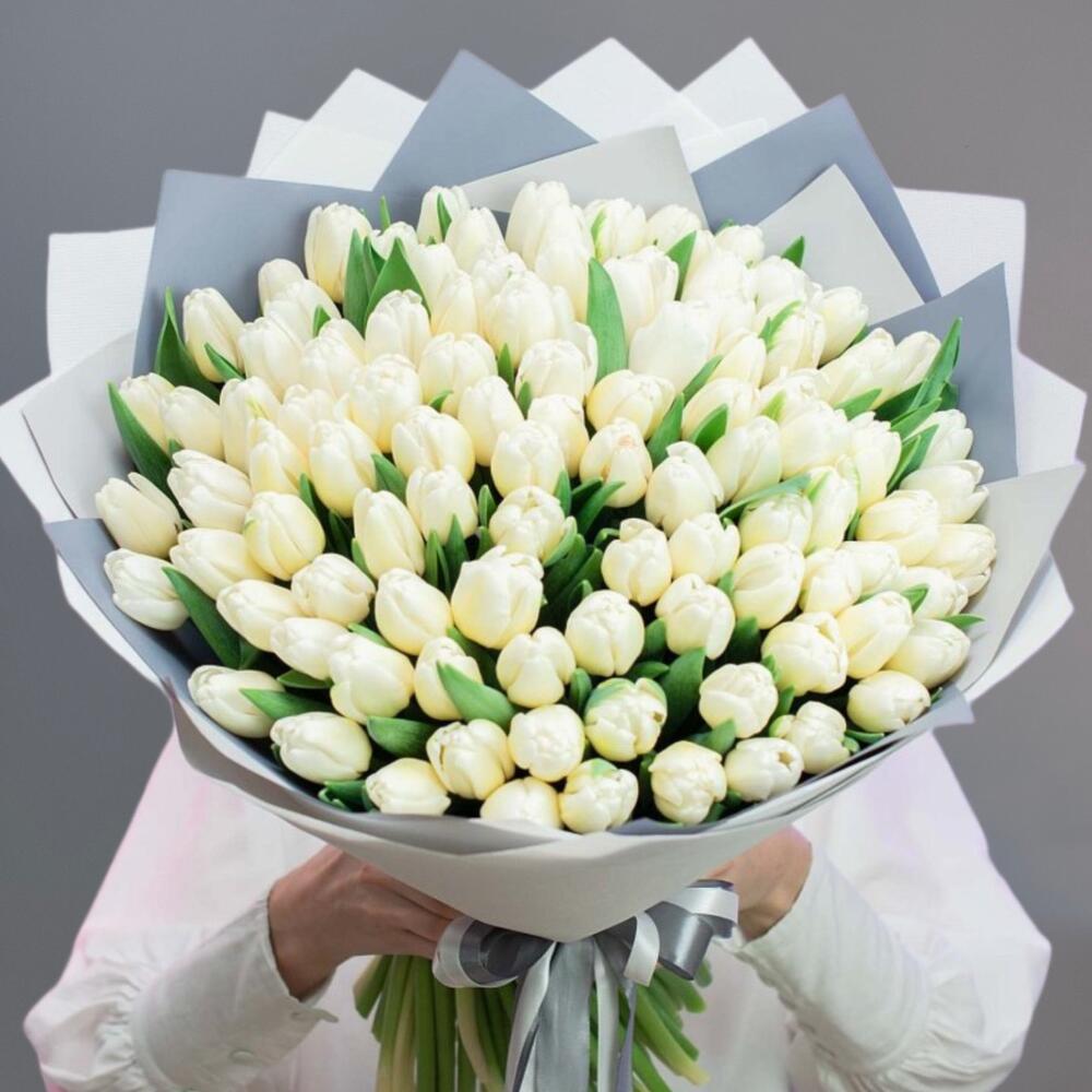 Охапка из белоснежных тюльпанов – шикарный подарок для близкого человека, идеальный подарок на 8 марта!