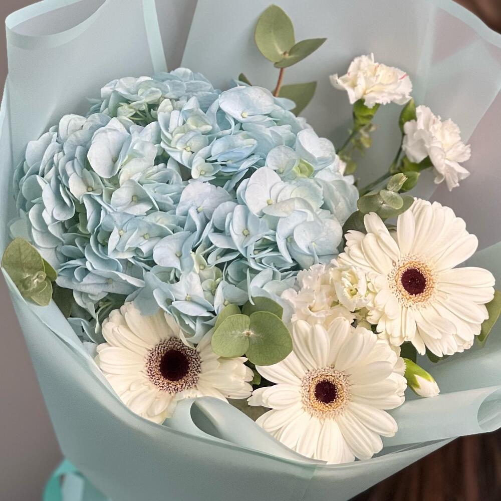 Нежный букет с голубой гортензией и гермини 🩵 в Лагани